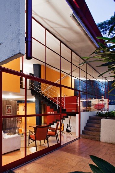 Although that new steel trust was not part of our first task requirements, it was brought to the scene during the construction works. Surely it has been converted in the most significant and meaningful achievement, once it condenses much about the original idea of the house. Everything we did after that was much easier and quite simple. Everything was aimed to the same goal of highlighting the original features of the Vilanova Artigas architecture. The colorful Mondrian pattern of the floor could be recovered by using tiles of the same factory that had provided it originally. We also enhance the house fluidity and transparency between inside and outside spaces, as if we were just quoting Vilanova Artigas: the house doesn’t end on the door threshold.