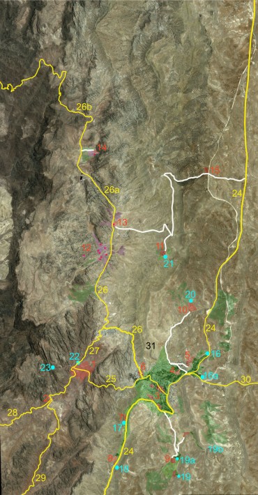 satellite image of Petra and its surroundings with the settlements, the founts, the streets and the agricultural areas